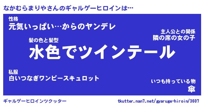 | 女子向けラノベタイトル風あだ名 | 『(仮)なかむらまりやのやんごとなき事情』 |