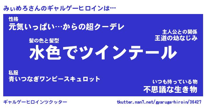 | 男性向けラノベタイトル風あだ名 | 『みぃめろの憂鬱』 |