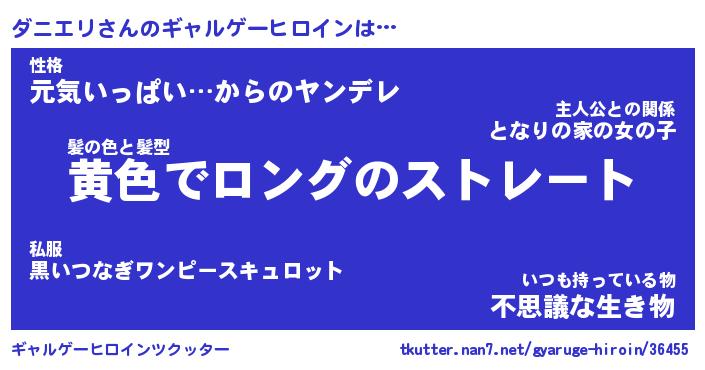 | 男性向けラノベタイトル風あだ名 | 『ダニエリアートオンライン』 |
