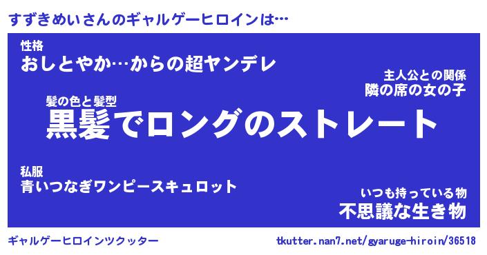 | ヒーロー風カッコイイあだ名 | 『スーパースズキメイ』『暗黒騎士スズ』 |