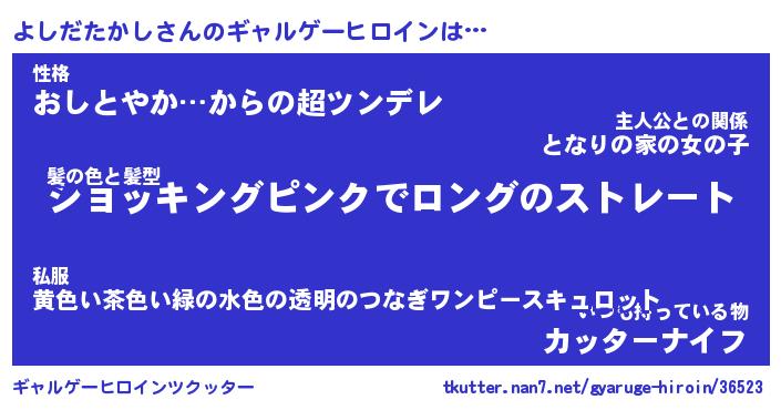 | 女子向けラノベタイトル風あだ名 | 『(仮)よしだたかしのやんごとなき事情』 |