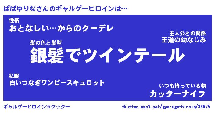 | 女子向けラノベタイトル風あだ名 | 『ばばゆりな姫と円卓の騎士』 |