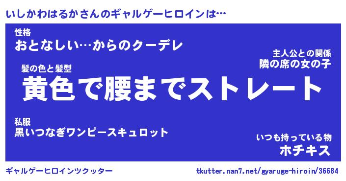 | 男性向けラノベタイトル風あだ名 | 『イシカワハルカアートオンライン』 |