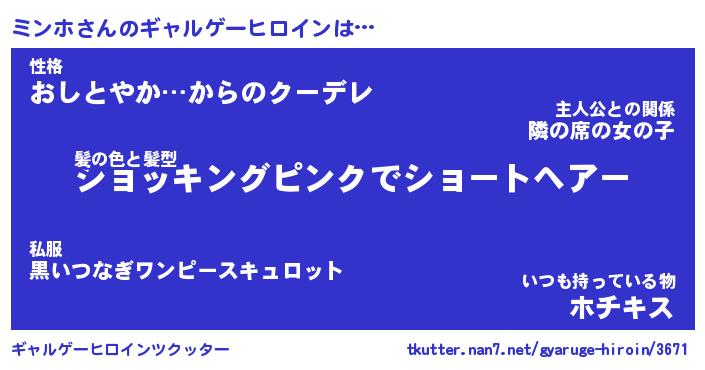 | 初対面の印象『地味』彼女の名前『ミン美』 |