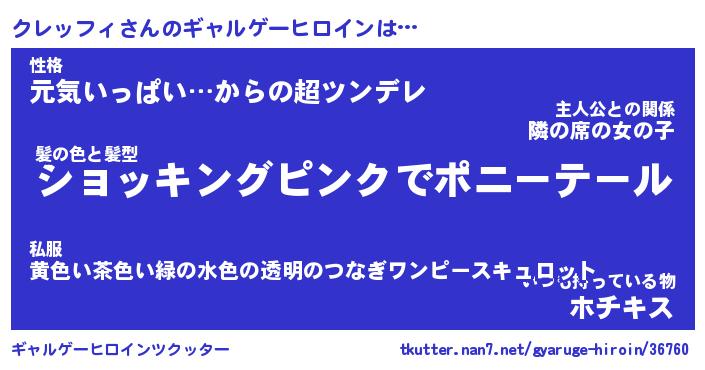 | ファンタジー風あだ名 | 『クレフェル』『エターナルクレッフィー』 |