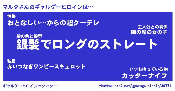 | 女子向けラノベタイトル風あだ名 | 『マルタ姫と円卓の騎士』 |