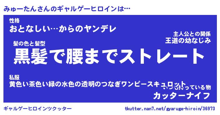 | 男性向けラノベタイトル風あだ名 | 『みゅーたんの憂鬱』 |
