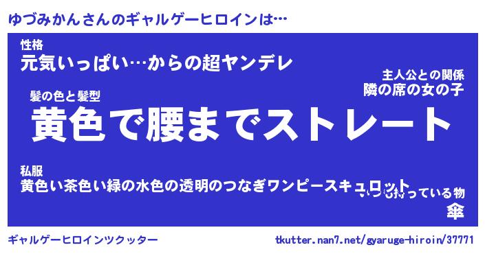 | ファンタジー風あだ名 | 『ユヅフェル』『エターナルユヅミカンー』 |
