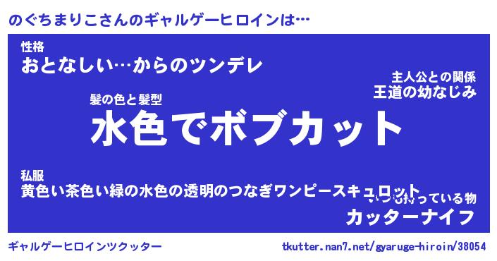 | 女子向けラノベタイトル風あだ名 | 『(仮)のぐちまりこのやんごとなき事情』 |