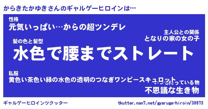| 女子向けラノベタイトル風あだ名 | 『(仮)からきたかゆきのやんごとなき事情』 |
