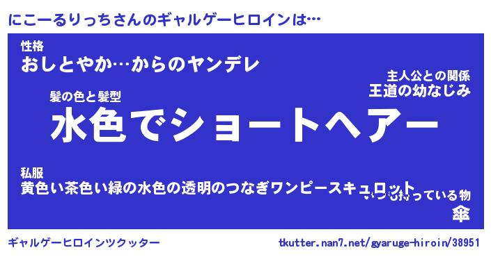 | 男性向けラノベタイトル風あだ名 | 『にこーるりっちの憂鬱』 |