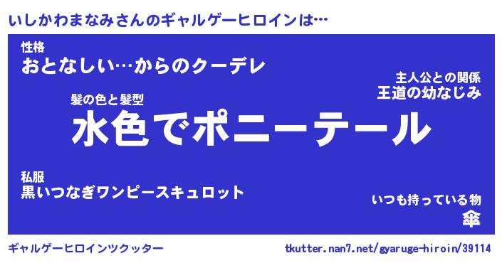 | 女子向けラノベタイトル風あだ名 | 『(仮)いしかわまなみのやんごとなき事情』 |