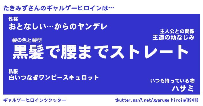 | ファンタジー風あだ名 | 『タキフェル』『エターナルタキミズー』 |