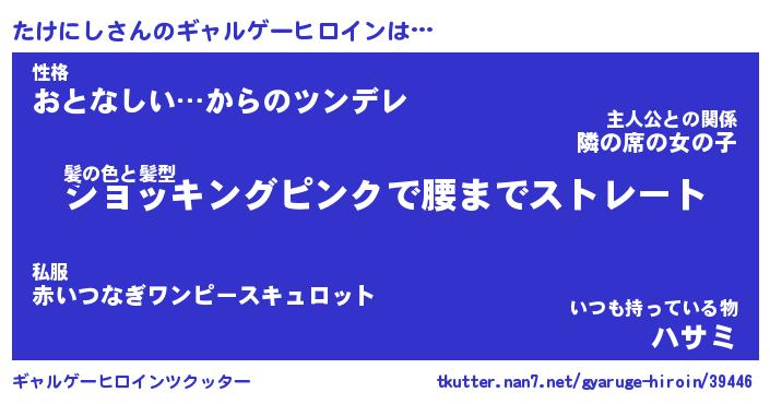 | 男性向けラノベタイトル風あだ名 | 『たけにしの憂鬱』 |