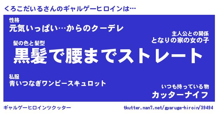 | 男性向けラノベタイトル風あだ名 | 『くろこだいるの憂鬱』 |