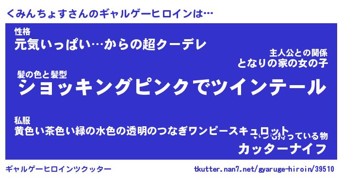 | 男性向けラノベタイトル風あだ名 | 『くみんちょすの憂鬱』 |