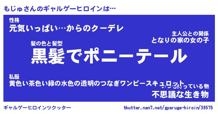 | 男性向けラノベタイトル風あだ名 | 『もじゅの憂鬱』 |
