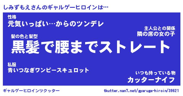 | ファンタジー風あだ名 | 『シミフェル』『エターナルシミズモエー』 |