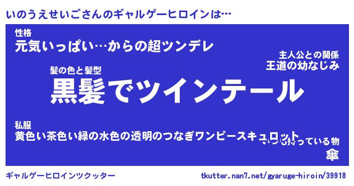 | 女子向けラノベタイトル風あだ名 | 『(仮)いのうえせいごのやんごとなき事情』 |