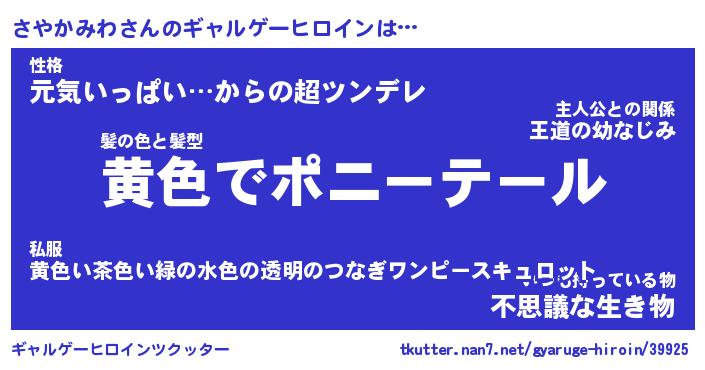 | ファンタジー風あだ名 | 『サヤフェル』『エターナルサヤカミワー』 |