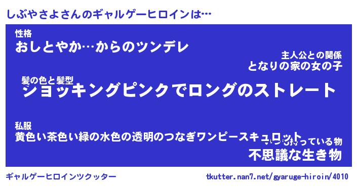 | 男性向けラノベタイトル風あだ名 | 『しぶやさよの憂鬱』 |