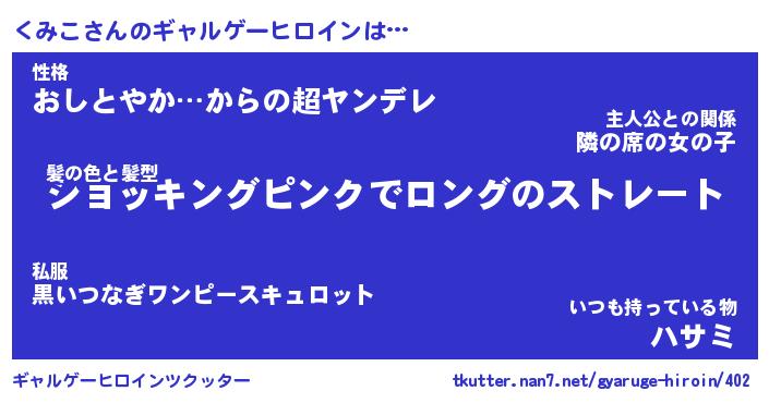 | ヘコむあだ名 | 『くみにゅー』『つくし』『くみを』 |