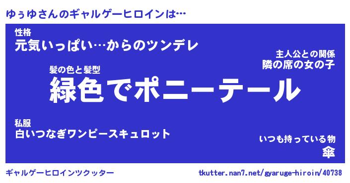 | ファンタジー風あだ名 | 『ユゥフェル』『エターナルユゥユー』 |