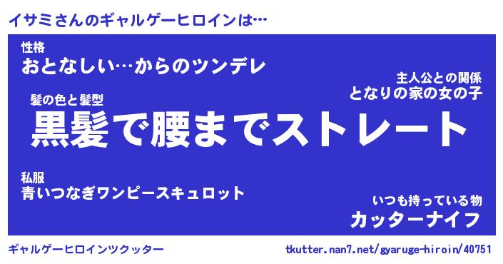 | 男性向けラノベタイトル風あだ名 | 『イサミの憂鬱』 |