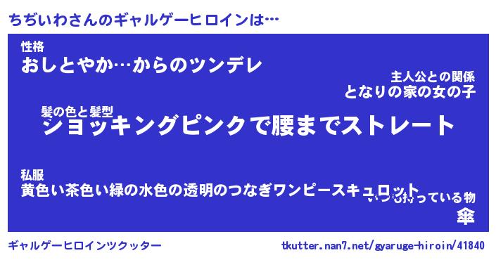 | 女子向けラノベタイトル風あだ名 | 『(仮)ちぢいわのやんごとなき事情』 |