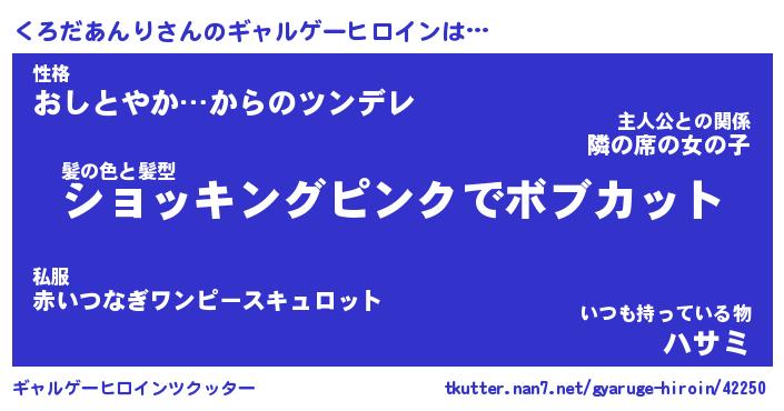 | 女子向けラノベタイトル風あだ名 | 『(仮)くろだあんりのやんごとなき事情』 |
