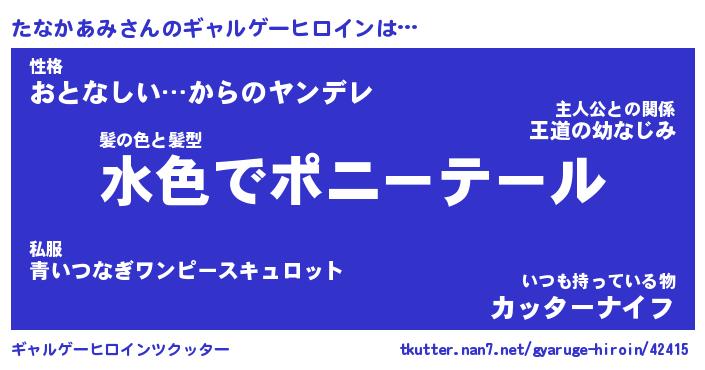 | ヒーロー風カッコイイあだ名 | 『スーパータナカアミ』『炎刃騎士タナ』 |
