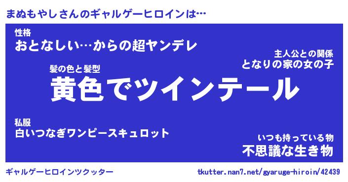 | ヘコむあだ名 | 『まぬにゅー』『なまこ酢』 |
