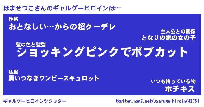 | 男性向けラノベタイトル風あだ名 | 『はませつこの憂鬱』 |
