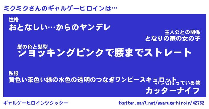 | ファンタジー風あだ名 | 『ミクフェル』『エターナルミクミクー』 |