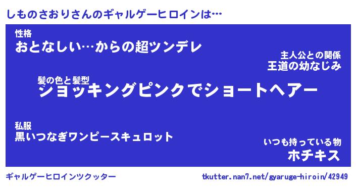 | ヒーロー風カッコイイあだ名 | 『スーパーシモノサオリ』『天弓騎士シモ』 |