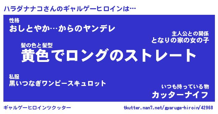 | ヒーロー風カッコイイあだ名 | 『スーパーハラダナナコ』『黄金騎士ハラ』 |