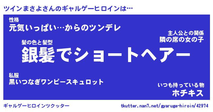 | ヒーロー風カッコイイあだ名 | 『スーパーツインマサヨ』『炎刃騎士ツイ』 |