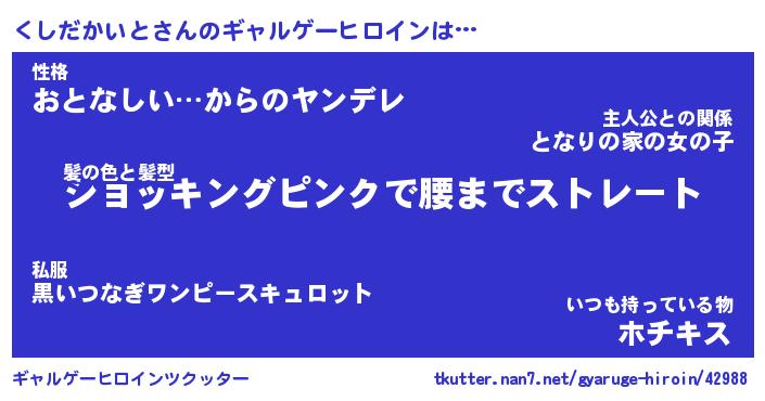 | 女子向けラノベタイトル風あだ名 | 『(仮)くしだかいとのやんごとなき事情』 |
