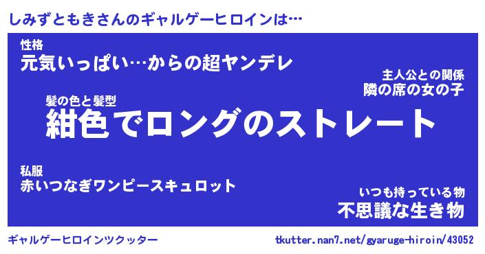 | 女子向けラノベタイトル風あだ名 | 『誰かこのしみずともきを説明してください! ~契約から始まるウェディング~』 |