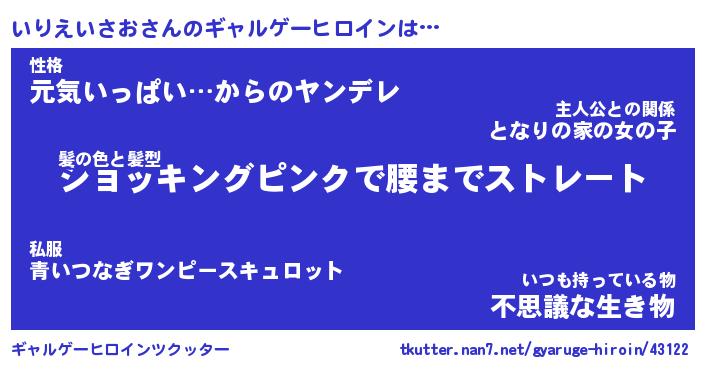 | 女子向けラノベタイトル風あだ名 | 『(仮)いりえいさおのやんごとなき事情』 |