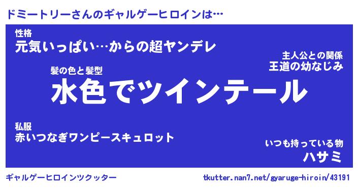 | 男性向けラノベタイトル風あだ名 | 『ドミートリーの憂鬱』 |