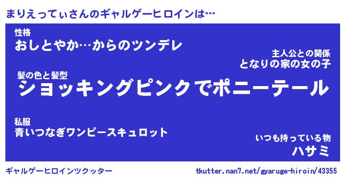 | 男性向けラノベタイトル風あだ名 | 『まりえってぃの憂鬱』 |