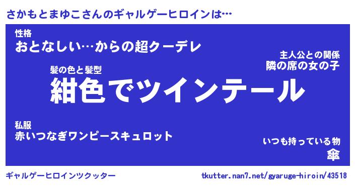 | 伝説のあだ名 | 『封印されしスナイパーさかもとまゆこ』 |