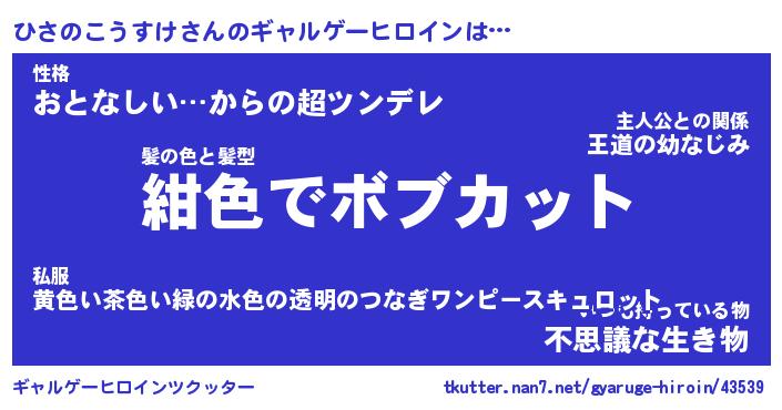 | 女子向けラノベタイトル風あだ名 | 『誰かこのひさのこうすけを説明してください! ~契約から始まるウェディング~』 |