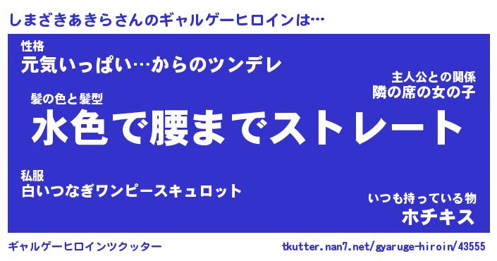 | 女子向けラノベタイトル風あだ名 | 『(仮)しまざきあきらのやんごとなき事情』 |