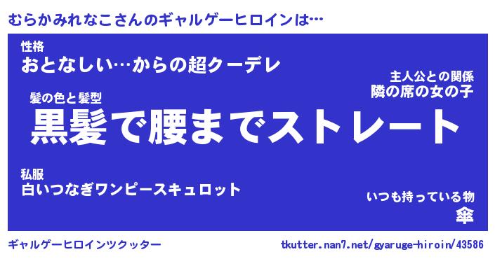 | 男性向けラノベタイトル風あだ名 | 『むらかみれなこの憂鬱』 |