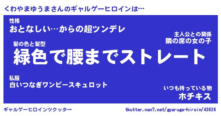 | 女子向けラノベタイトル風あだ名 | 『くわやまゆうま姫と円卓の騎士』 |
