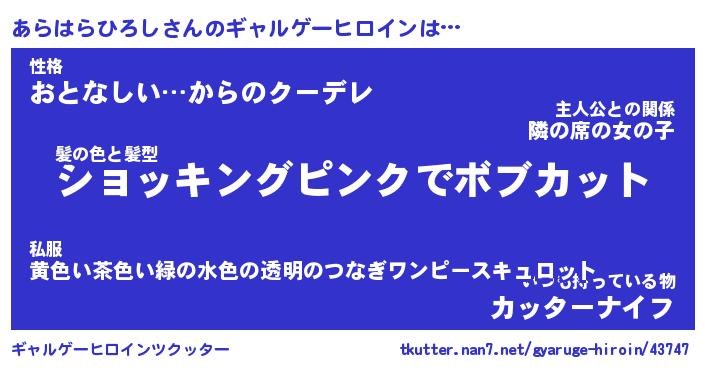 | 女子向けラノベタイトル風あだ名 | 『(仮)あらはらひろしのやんごとなき事情』 |