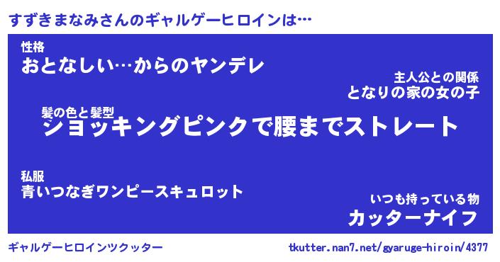 | ヒーロー風カッコイイあだ名 | 『スーパースズキマナミ』『炎刃騎士スズ』 |