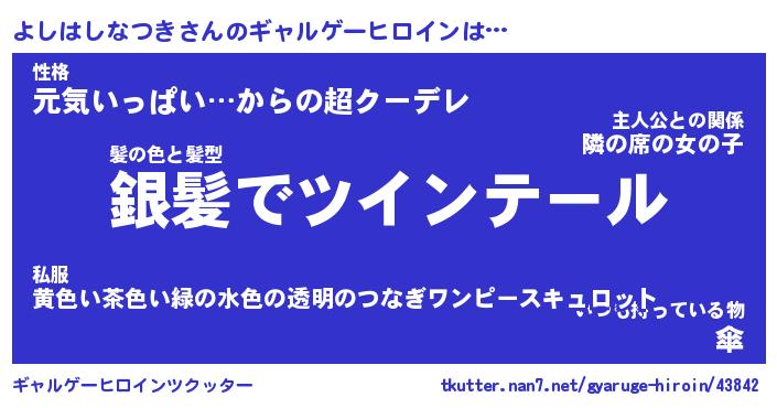 | 女子向けラノベタイトル風あだ名 | 『よしはしなつき姫と円卓の騎士』 |